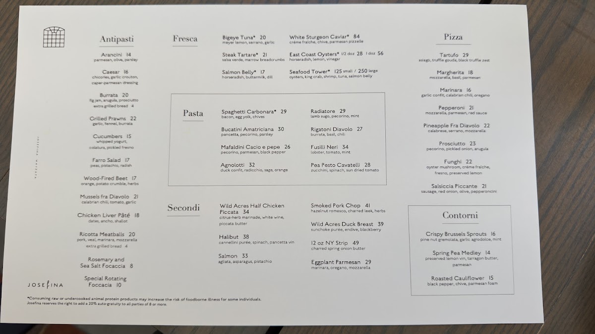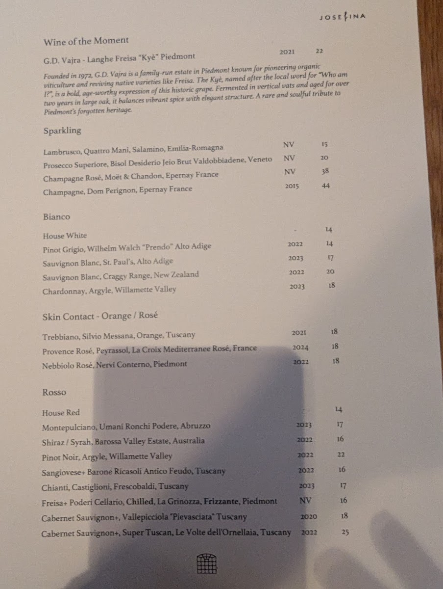 Josefina’s menu offers a thoughtful blend of Italian-inspired dishes that balance comforting familiarity with fresh, seasonal ingredients. The selection ranges from light bites and wood-fired pizzas to hearty pasta plates and satisfying mains, making it well-suited for a relaxed lunch, a casual dinner, or a leisurely weekend outing.
