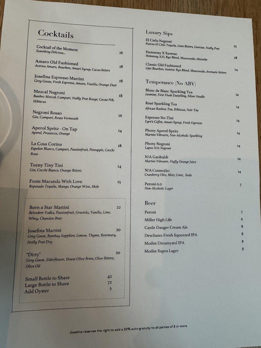 Overall, the menu at Josefina encourages enjoying quality food and drink in a space that echoes classic lakeside charm with a modern touch. Whether dining with friends or stopping by for a quiet meal, the experience is grounded by thoughtful service and a welcoming vibe.